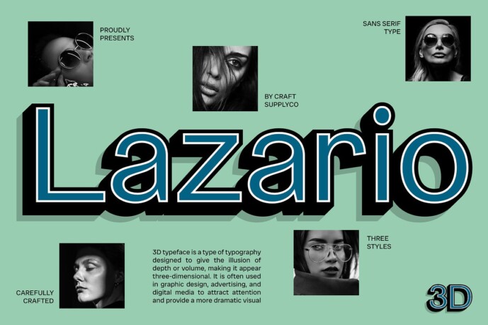 Versatile for Multiple Applications Designed for versatility, Lazario 3D is ideal for a wide range of applications, from eye-catching logos to striking promotional materials. Its contemporary feel ensures it shines in both creative and professional contexts, making it a valuable addition to any designer’s toolkit. Despite its bold appearance, Lazario 3D maintains excellent readability, ensuring that your message is communicated effectively.