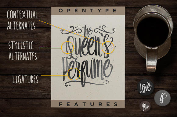 vertical body, the explorations from usual italic script typeface so it can give you the new image of script typeface yet still in the same way process, with a traditional brushes and inks. Perfectly fit for your wedding card design, some handcrafted products, vintage products, butterfly in your stomach guaranteed. Spread the love!
