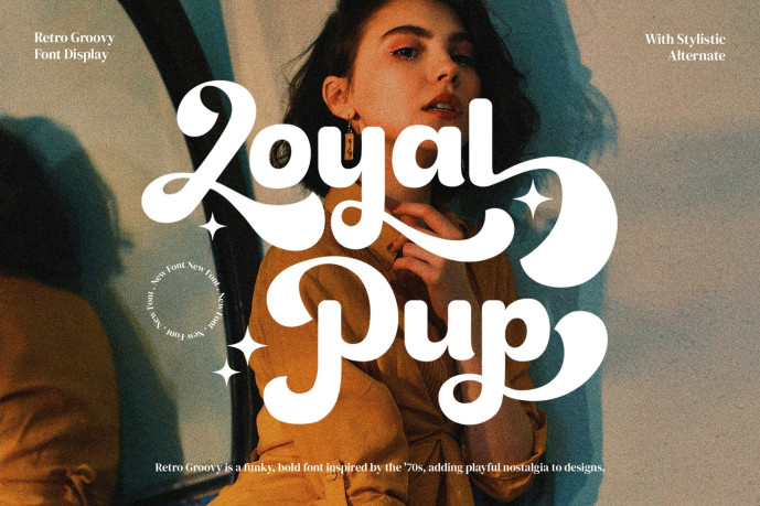 Loyal Pup – Retro Groovy Typeface inspired by the bubbly spirit of the ’70s. Bouncy curves, smooth swashes, and playful letter endings bring instant warmth and personality to bold headlines and vintage-inspired branding. Whether you’re crafting vibrant posters, café logos, or fun packaging, Loyal Pup delivers a friendly groove that pops on any layout.