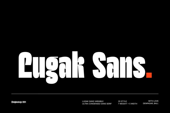 Lugak Sans is a modern sans serif font that blends the clean, functional aesthetic of Neue Grotesk with the raw, expressive energy of street art. Designed for versatility and impact, this font offers a condensed style that captures both the structure of urban landscapes and the creativity found in street culture. With 7 weights and 5 widths and in total 35 styles ranging from tall to condensed and thin to bold, Lugak Sans provides a wide range of flexibility for any design project.