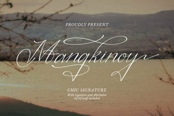 Mangkinoy Font is a stylish and incredibly elegant script font. It looks stunning on wedding invitations, thank you cards, quotes, greeting cards, logos, business cards and every other design which needs a handwritten touch.