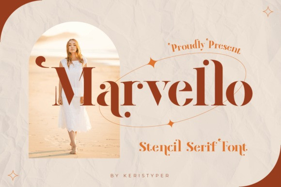 Marvello is a classy and elegant stencil serif font perfect for any project. This font is good for logo design, Social media, Movie Titles, Books Titles, short text even long text letters, and good for your secondary text with a sans or script.