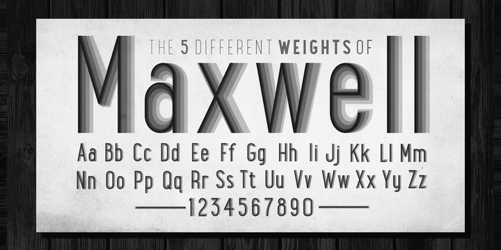 Maxwell is a clean condensed san serif typeface inspired by similar retro fonts from the 1950’s. It comes in regular and small caps versions, includes stylistic alternatives