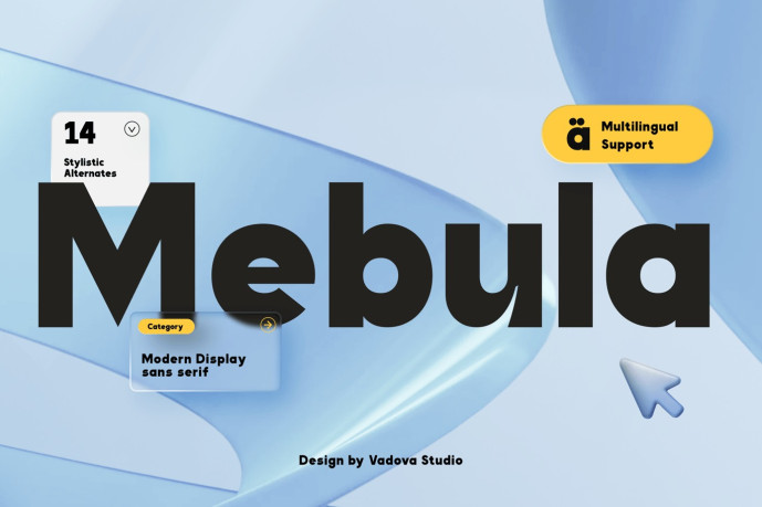 Mebula Font is a bold and modern sans-serif display typeface designed with clarity, impact, and versatility in mind. It features strong geometric shapes, high legibility, and a commanding presence, making it perfect for contemporary branding, web headers, mobile interfaces, and digital advertising. With 14 stylistic variants, full multilingual support, and a complete character set including uppercase and lowercase letters, numbers, punctuation marks, and symbols, Mebula is ready to meet a variety of design needs. Its clean and powerful aesthetic is ideal for tech startups, creative agencies, modern product packaging, and bold digital design projects.