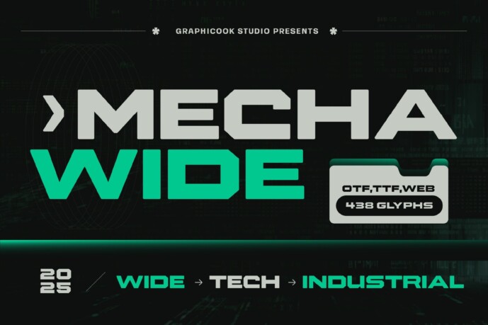 Mechawide is an experimental sans-serif font with wide letterforms that convey a modern, futuristic impression. It’s perfect for headlines, professional designs, or projects with a technology-driven theme.