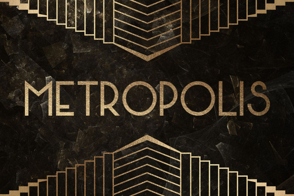 Metropolis is an art-deco typeface with uppercase letters, numbers and punctuation. Toggle caps lock to use alternate characters.