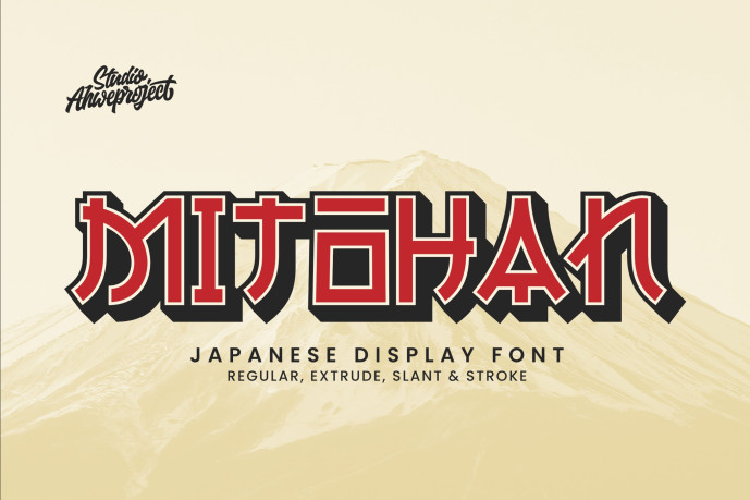 Mitohan Display Font – bring the spirit of Japan into your designs with Mitohan – a unique display font inspired by traditional Japanese aesthetics fused with a modern twist. Perfect for eye-catching projects such as posters, branding, logos, food packaging, and anything with an Asian flair.