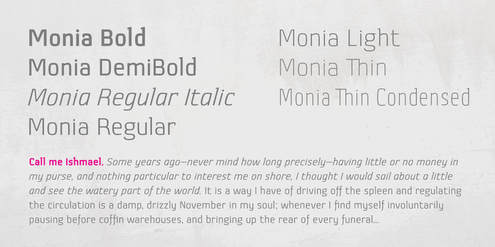 Monia is a modern grotesque font family designed as body and display type. With its extent of five