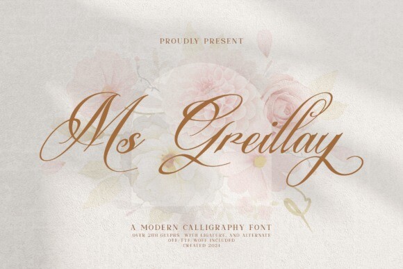 Ms Greillay Font is a stylish modern calligraphy font. It features smooth, flowing letters that look elegant and artistic. Perfect for invitations, greeting cards, and personal notes, it adds a lovely touch to any design.