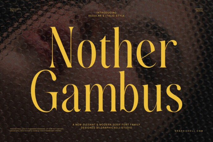 Nother Gambus is a serif font family with a modern style. Like other serif fonts, Nother Gambus boasts a high level of readability. The font still looks very sharp, even if its size is small. Therefore, Nother Gambus, you can read a long paragraph text like an article using this type of font. Nother Gambus is not only a delicate font that guarantees clear and precise reading, but also gives us a modern and elegant appearance. You can feel an elegant and beautiful stroke from the italic style. The regular font, like the italic, looks very beautiful and has an artistic look with its different weights on each curve of the lines. Last but not least, the Nother Gambus font is undoubtedly widely used for multifaceted businesses. Suppose you can use it for layout design, logo font, a magazine, a headline, branding of any company, and it is also good for the quote font.