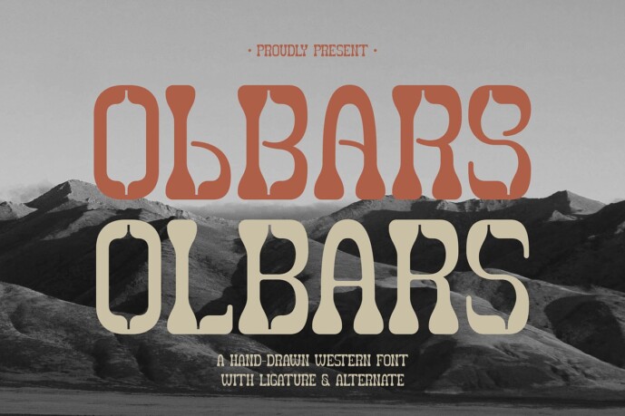 Olbars Western Font, from Gracetypestudio, suitable for any projects such as: logos, branding projects, homeware designs, product packaging, mugs, quotes, posters, shopping bags, t-shirts, book covers, name card, invitation cards, greeting cards, label, photography, watermark, special events, and all your other lovely projects that need a Western Font taste.