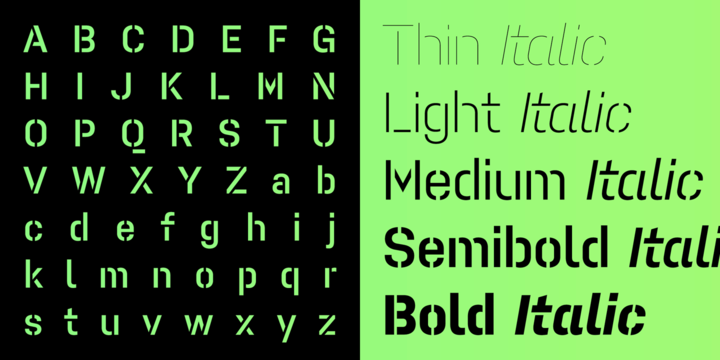 Pacifista takes advantage of the well-tested structure of our constructed typefaces, the directness and simplicity of which are by far the best suited to stencils. Straight lines, regular arcs and purity of drawing facilitate maintaining the maximum possible legibility even in a typeface that is practically devoid of any joining of strokes.