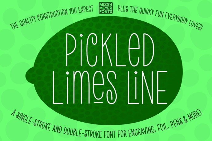 Pickled Limes Line is a playful single-line font derived from the original Pickled Limes outline typeface. Featuring a tall, narrow handwritten style, it adds a fun and quirky touch to a wide range of creative projects—perfect for greeting cards, personalized gifts, jewelry engraving, cutting boards, and more.