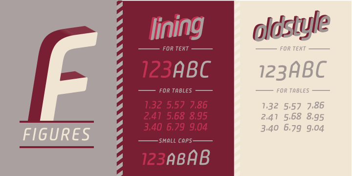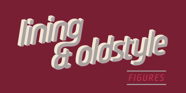 Includes the following OpenType features: OT All Small Caps, Small Caps, Fraction, Proportional/Tabular Oldstyle and lining figures, subscript and superscript numbers.