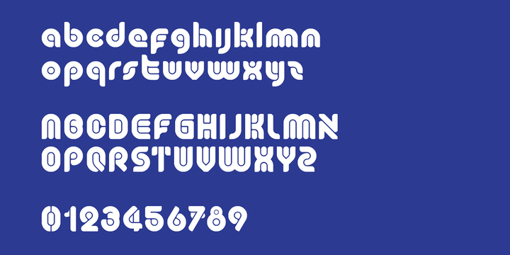 Plug is an experimental, curvy, display typeface designed by Superfried. As its name suggests, it features ‘plugs’ within all the glyph counters. Plug has a very retro feel and its chunky structure leads to a distinct, high-impact display font. Plug has been featured on the Behance curated typographic gallery TypographyServed.com.