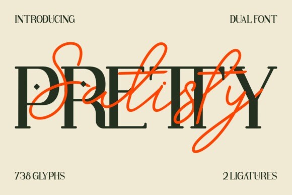 Pretty Satisfy Font, a luxurious font duo that effortlessly blends the classic sophistication of a bold serif with the graceful flow of a monoline script. This unique combination makes Pretty Satisfy the ideal choice for any project that seeks to embody both elegance and contemporary style. With over 738 glyphs and beautiful ligatures, this typeface offers endless possibilities for creative expression. Whether you’re designing logos, crafting wedding invitations, or adding a touch of class to packaging, Pretty Satisfy provides the versatility and refinement needed to elevate your work. Its contrasting styles ensure a harmonious balance, making your designs stand out with a polished and professional look.