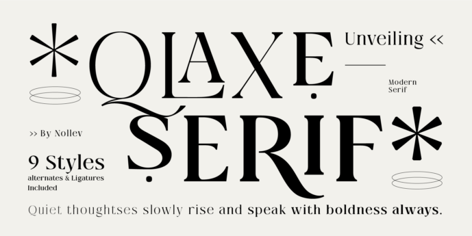 Qlaxe Serif Personal use Font is a classic modern serif font that combines timeless charm with refined contemporary style. With 9 elegant styles and unique ligatures, Qlaxe is perfect for sophisticated branding, editorial design, and premium packaging.