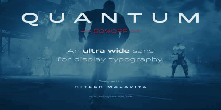 A very friendly-looking sans, Quantum Latin is Hitesh Malaviya’s first published typeface for the Latin-script. Its five styles are very, very wide, but the letterforms do not look too technical.