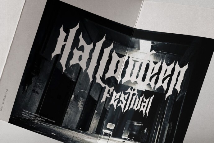 Raven Faith Font a display font inspired by sharp rose thorns, has a horror impression, sharp angles also add a mystical impression and is ideal for use in designs with a Halloween or gothic theme.