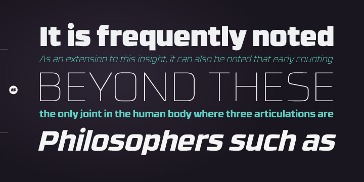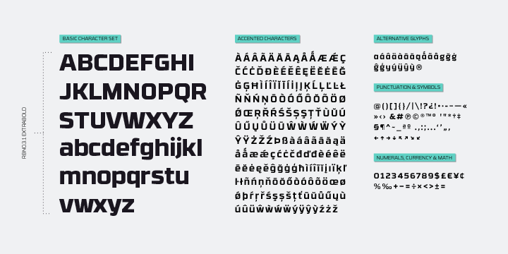 RBNo3.1 is a sans serif typeface with a technical and geometric appearance. The family includes 9 weights with matching italics. Its large x-height makes it especially legible at small point sizes.