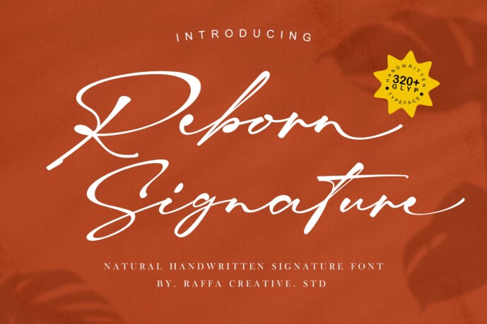 Reborn Signature is a smooth and elegant handwritten font that captures the flow and charm of real handwriting. Its sleek, natural strokes and over 320 glyphs make it ideal for high-end branding, personal logos, fashion labels, or wedding stationery where sophistication meets authenticity.