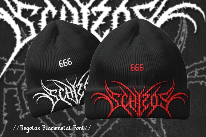 Regolax Font | Black Metal Font, from Denustudios, suitable for any projects such as: logos, branding projects, homeware designs, product packaging, mugs, quotes, posters, shopping bags, t-shirts, book covers, name card, invitation cards, greeting cards, label, photography, watermark, special events, and all your other lovely projects that need a Black Metal Font taste.