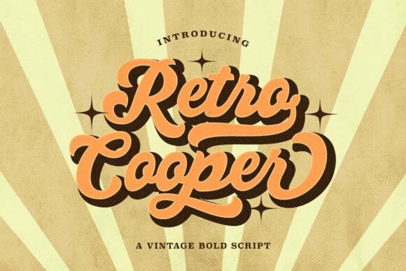 Retro Cooper Font is a vintage and retro bold script with stylish alternates and ligatures. With a vintage look, you can use this font for any poster retro event that requires classic, old-timey vibes.