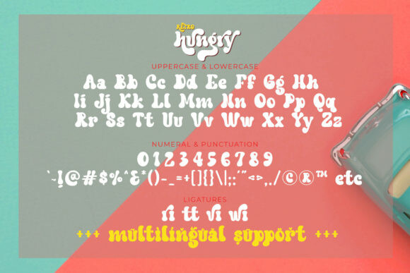 Retro Hungry Font is a fresh yet groovy styled display font. It is perfect for projects, logos, crafting, wedding invitation, branding, sticker, sublimation, and many more. This font is PUA encoded which means you can access all glyphs and swashes with ease!
