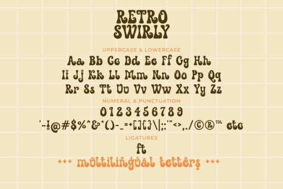 Retro Swirly Font is an elegant vintage font. It represents the 70s style with a modern touch with its swirl. It is bold, groovy, and bubbly.
