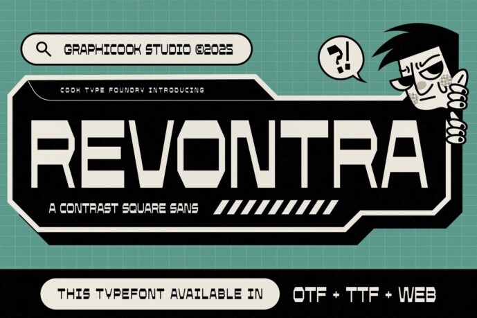 Revontra is an experimental font featuring bold, distinctive letterforms that convey a mathematical and futuristic vibe. Perfect for cyberpunk or futuristic design projects