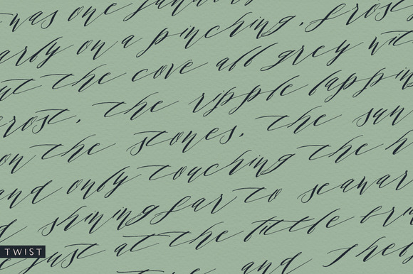 The Rivea Family is a two-font, hand-lettered script family designed to mimic real calligraphy. Each font dances along a natural, variable baseline and has a distinctive slant. Long, thin upstrokes contrast with rich downstrokes in a style reminiscent of “wet noodle” pen writing.