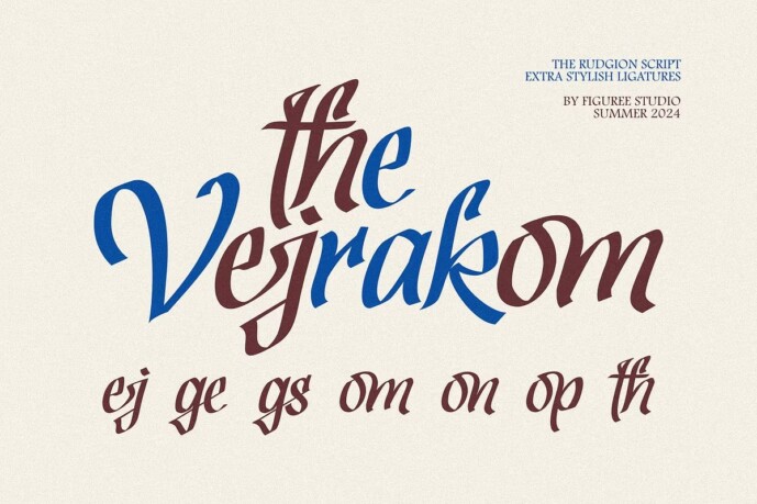 🌟 Timeless Appeal: Rudgion’s classy script style transcends trends, offering a timeless appeal that suits both modern and classic design projects. Its enduring elegance makes it a reliable choice for any designer looking to create lasting impressions.