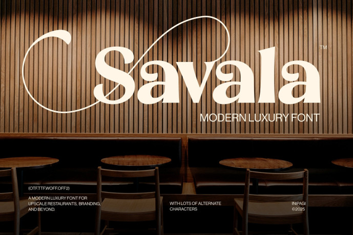 Savala Modern Luxury Font, a refined typeface crafted to elevate high-end experiences. With its sophisticated style and elegant detailing, Savala is especially recommended for luxury restaurants, fine dining menus, and culinary branding. Beyond hospitality, its versatile design also adapts beautifully to fashion, lifestyle, and exclusive event materials.