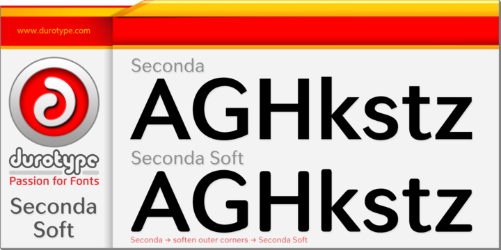 Seconda Soft is the soft companion of Seconda. A little friendlier, a little easier on the eye, a little more informal, a little more fashionable — but still the refined and reliable Seconda. Seconda Soft’s softness comes from the moderate rounding of the edges of its characters.