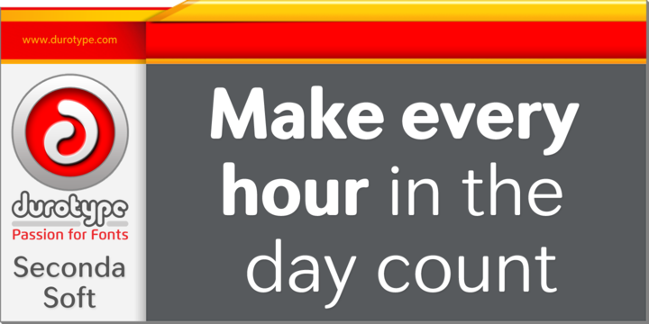 Seconda Soft has sixteen styles, extensive language support, eight different kinds of figures, sophisticated OpenType features — so it’s ready for advanced typographic projects.