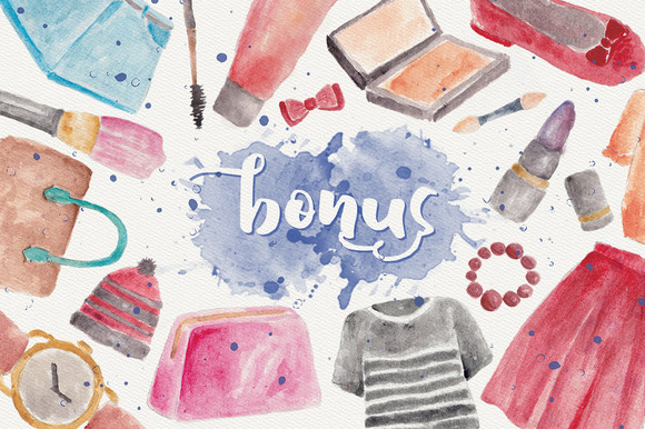 Bonus : Graphic pack of fashion that I create manually with using watercolor (format PNG with transparent background) :))