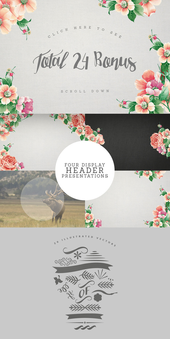 It makes the design look personal and natural. Shine & Tokio suitable for vintage design as well as modern design, it can be used in your watercolour design project, greeting card, poster, t-shirt design, branding, etc.