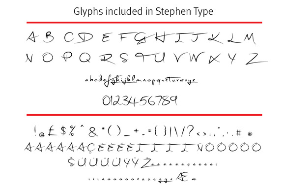 Stephen Type is a realistic handwriting and signature font. Please see all of the additional pictures to see how it looks and view the glyphs (includes some Latin glyphs).