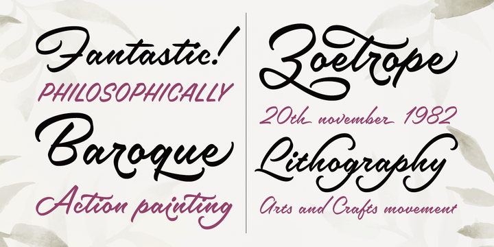 Sivellin is an elegant brush script with a lots of alternates, swashes and small caps. All in all it has over 1,300 glyphs. Sivellin has round and soft letterforms, low x-height and quite a generous spacing to get that elegant and very legible result.