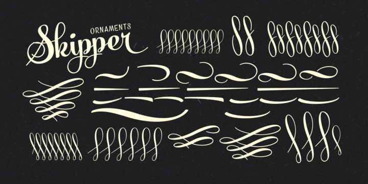 Inside Skipper there’s a set of 35 ornaments designed to support the font. Access the ornaments from the Glyph Palette.