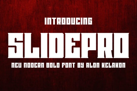 Slidepro Font is unique . Ready to use for your design like labeling, clothing, movie sceen, poster, movie title, gigs, album covers, logos, and much more.