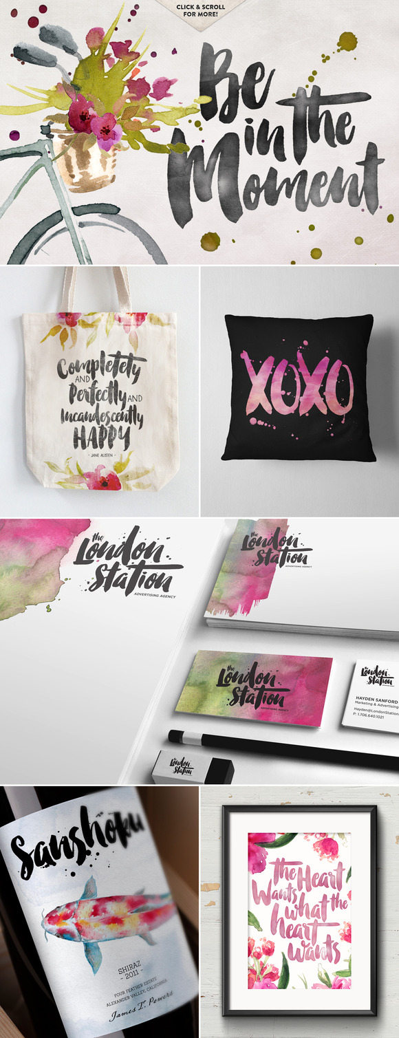 Smitten Typeface is a hand-inked, ‘semi-script’ font with tight kerning, and a fun, imperfect baseline. It’s nice and bold, plus a little gritty – Perfect for creating organic, fluid typography on products, branding, invitations, fliers, posters and more! Don’t forget to add the splatter freebies! It just adds to the inky goodness!