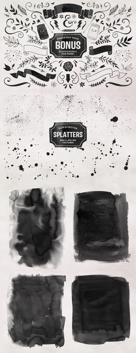 - 6 BONUS Vector Ink Splatters (AI & EPS).