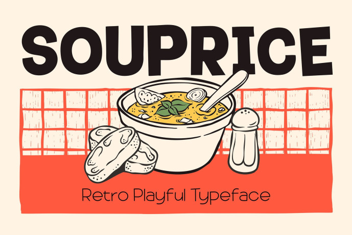 Souprice is a retro playful typeface that brings a nostalgic yet fun personality to your designs. Hand-drawn with a touch of organic charm, this font comes in two striking styles: Bold and Light. Whether you’re designing posters, packaging, or playful branding, Souprice adds a warm and lively feel with its unique hand-crafted look. Perfect for those who want a touch of retro vibes with a modern twist!