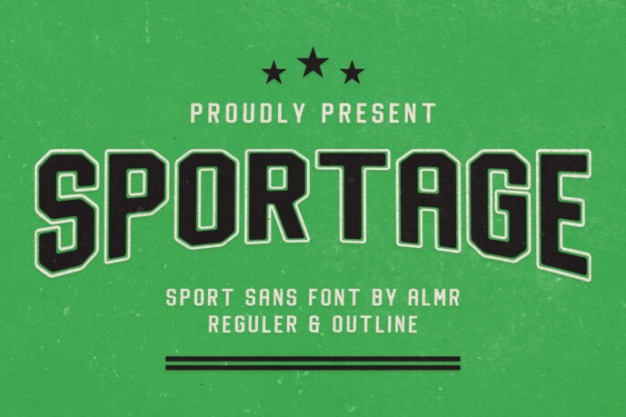 Sportage Display Font is a bold, retro sports font designed to bring energy and style to any professional branding project. Ideal for logotypes, watermarks, posters, promotions, product packaging, and more, this font captures the essence of vintage athletic design with its collegiate-inspired look. Each letter exudes a dynamic, sporty vibe that’s perfect for making your brand stand out. Sportage is available in two versatile versions, Regular and Outline, allowing you to create striking and memorable designs for everyone.
