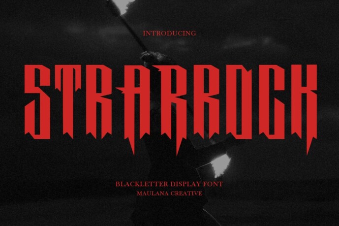 Strarrock Font – Blackletter display. A heavy stroke, vintage character with variations. To give you extra creative work. Strarrock display font supports multilingual language. This font is suitable for logo design, social media, movie titles, book titles, short text, even long letter, and suitable for your secondary text font with script or Serif. Make stunning work with Strarrock font