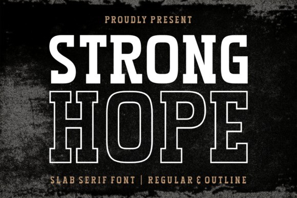 Strong Hope Font is a robust slab serif font that combines strength with versatility. This font offers both regular and outlined variations, providing you with options for bold and impactful designs. Ideal for conveying a sense of reliability and resilience, Strong Hope adds a touch of classic style to your projects. Whether you’re creating posters, headlines, or any design that demands a bold presence, this font is your dependable companion for a strong and confident look.
