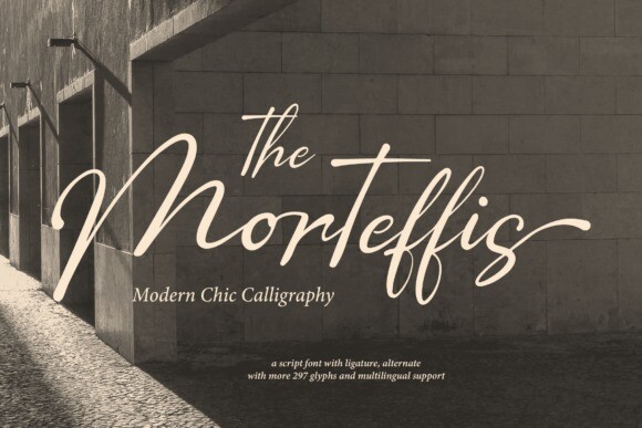 The Morteffis Font is an elegant script font with a contemporary atmosphere and impeccable form, inspired by timeless classic calligraphy. Not too thin and not too thick, balanced and varied, this font was designed to enhance the beauty of your projects.