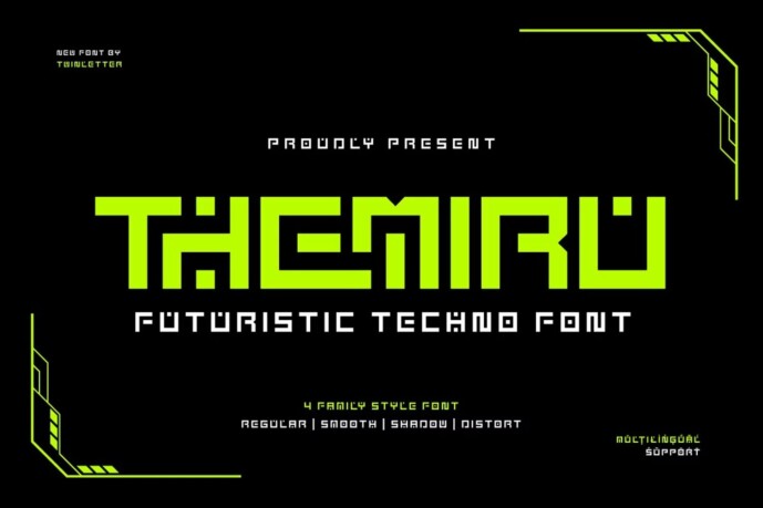 Themiru Font, a futuristic technology font that combines modern and innovative aesthetics. Designed to create a revolutionary visual experience, Themiru brings an elegant and efficient futuristic touch to every letter.