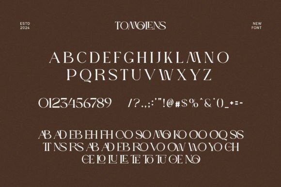 Tomolens Font – Elegant serif typeface combined with a classy and modern style. This type of font is very suitable for your various needs such as branding projects, logos, wedding designs, social media posts, advertisements, product packaging, product designs, labels, photography, watermarks, invitations, stationery, and any project, created with high level of readability.